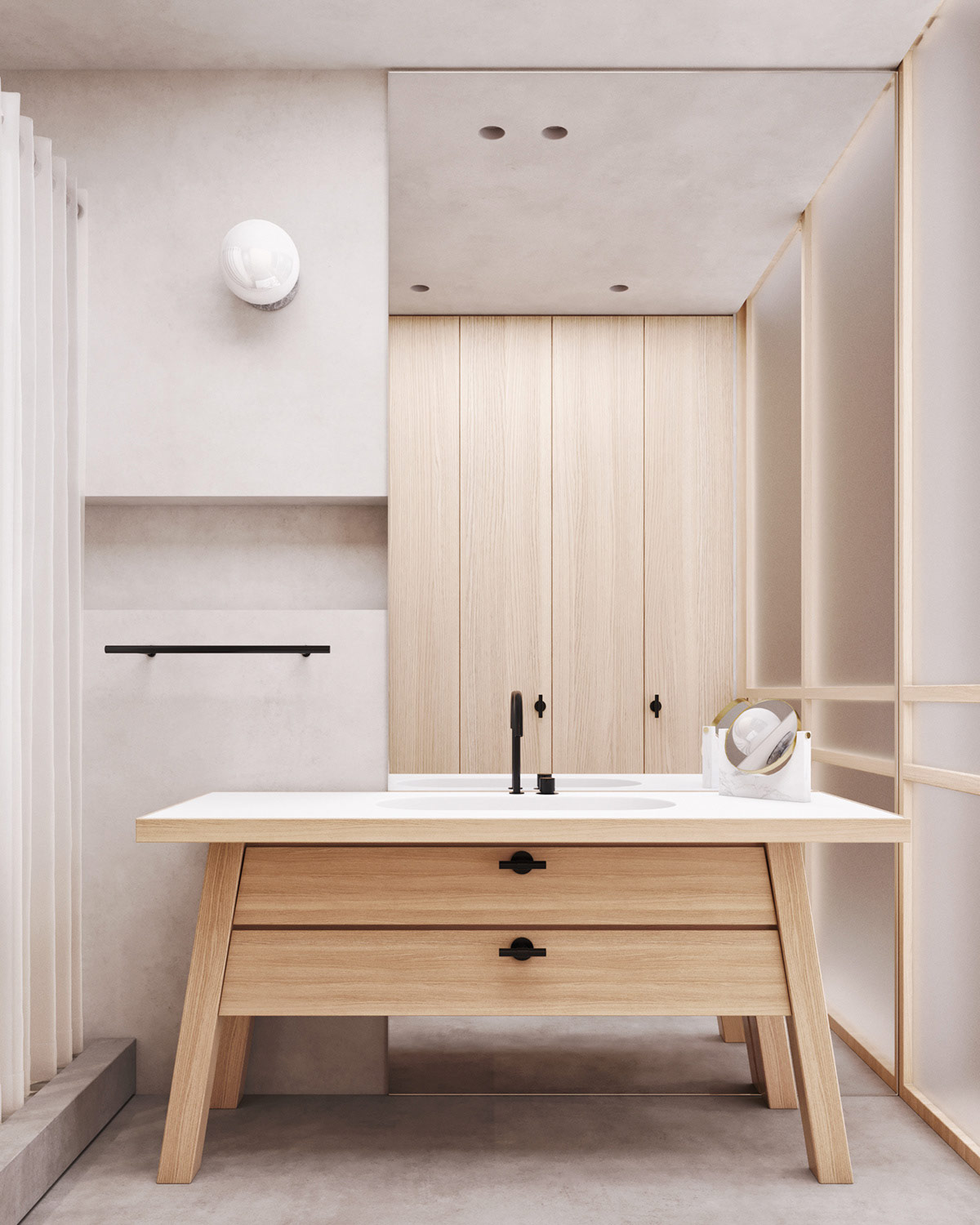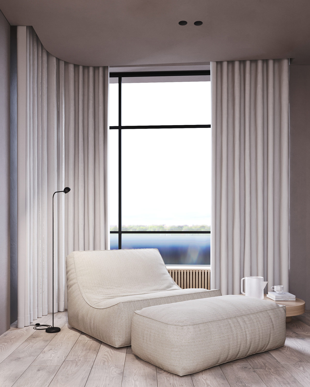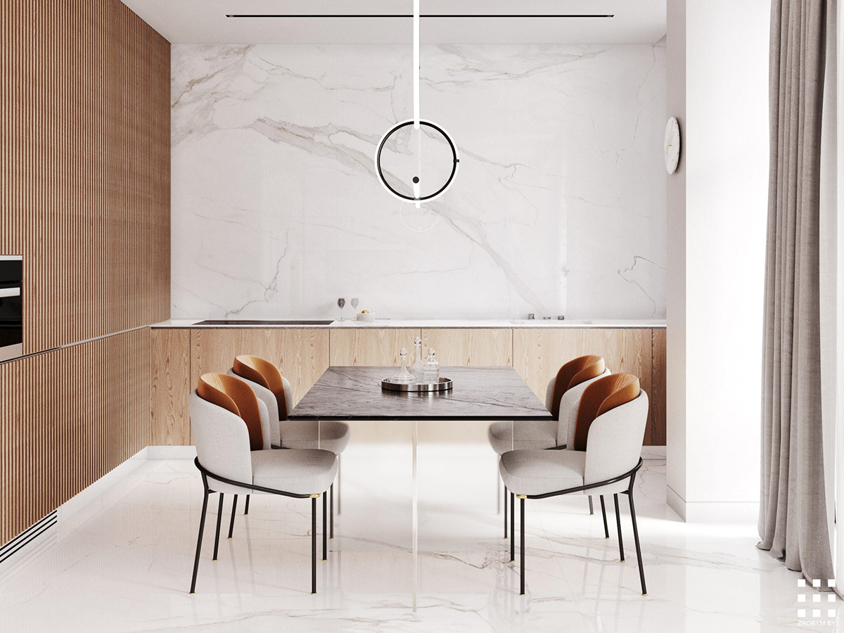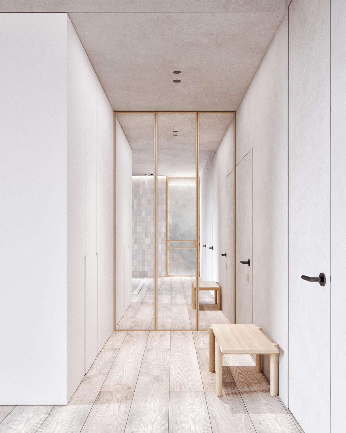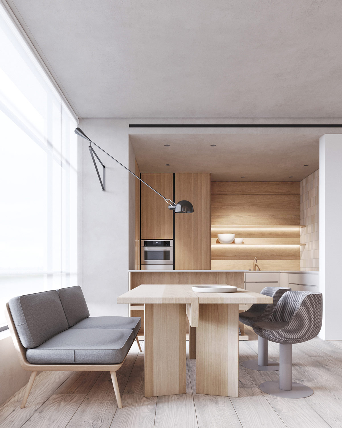 Этот концепт семейного дома площадью 119 квадратных метров предназначен для квартиры на Парк Авеню в Киеве, Украина. Минималистичный и элегантный интерьер из белого и светлого дерева неподвластен времени. Дымчато-серые и насыщенные карамельные акценты создают плавные тональные дополнения.