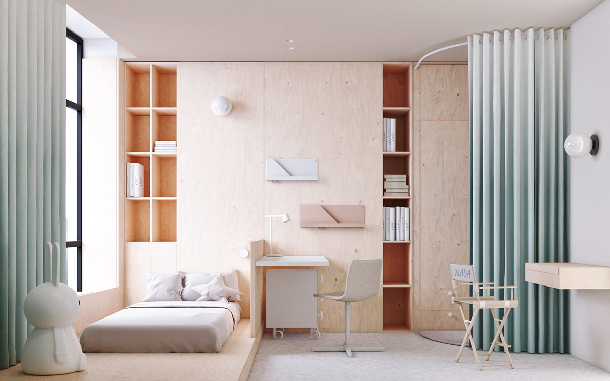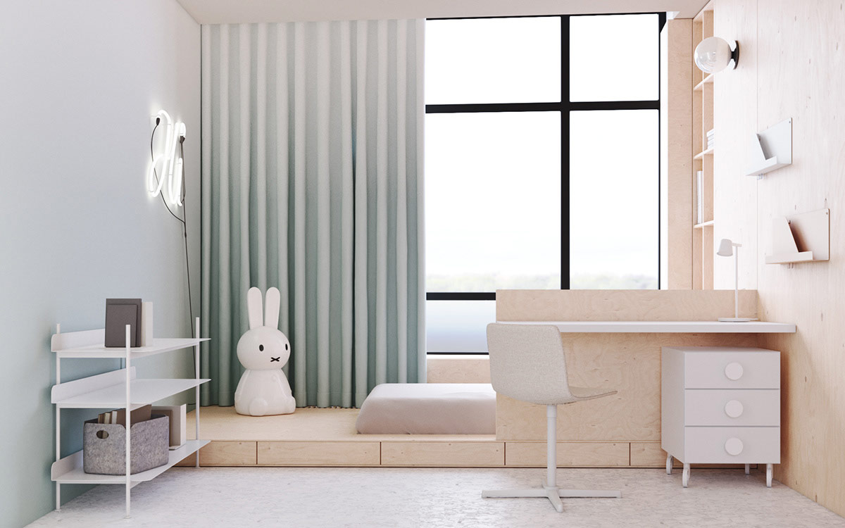 Мятный акцент прокрадывается в палитру декора детской комнаты, что придает пространству оживленный юношеский вид.