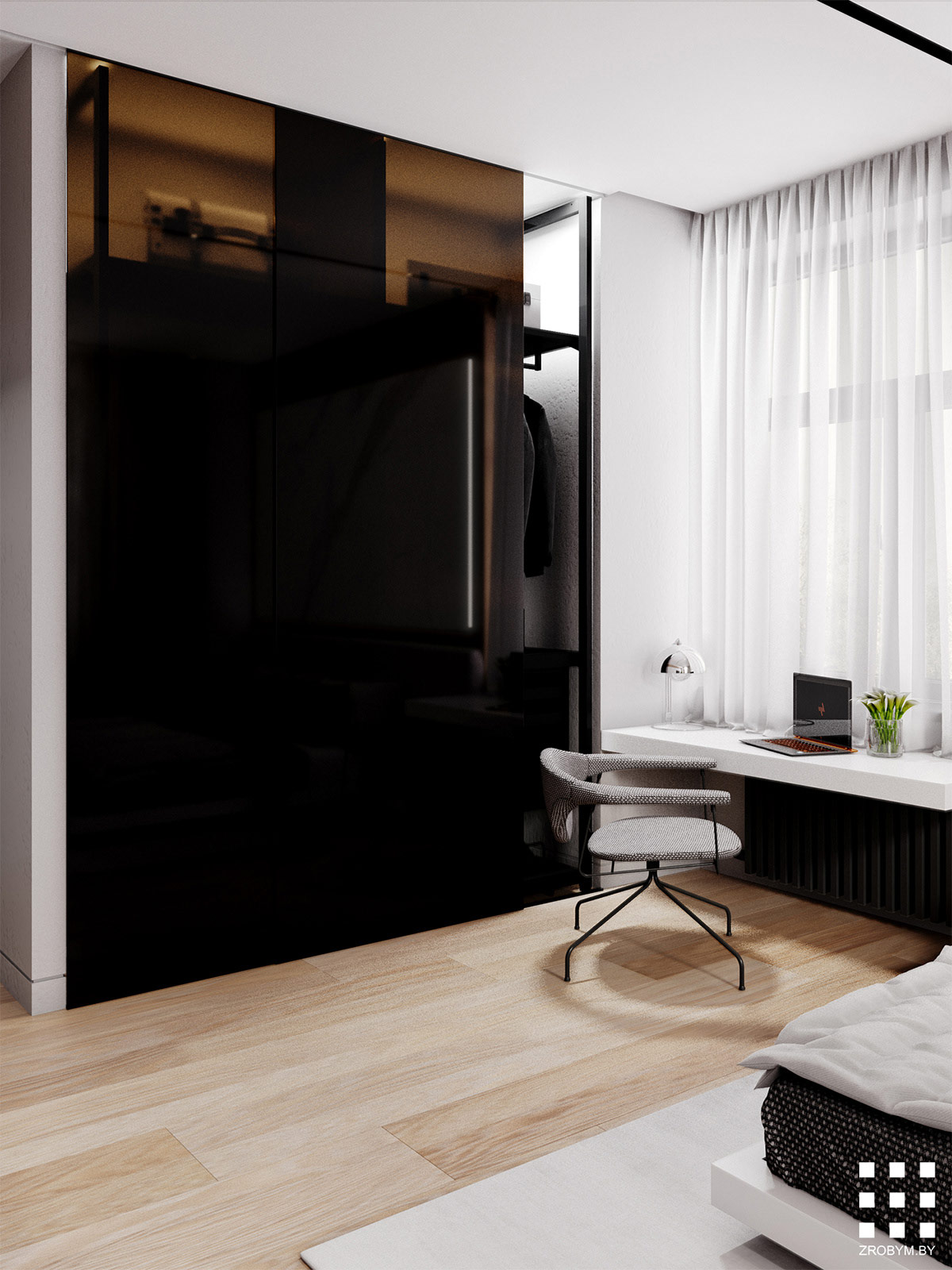 Тонированные стеклянные двери шкафа-купе создают уникальную и функциональную особенность.